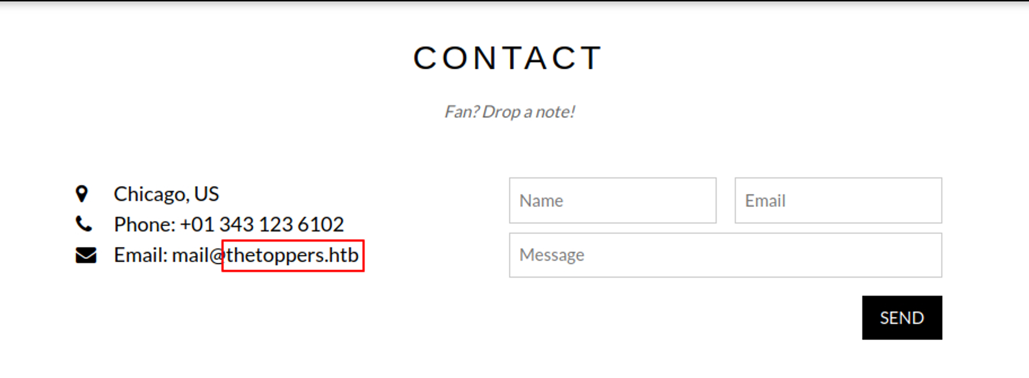 번역: 웹사이트의 'Contact' 섹션에 제공된 이메일 주소의 도메인은 무엇인가요?