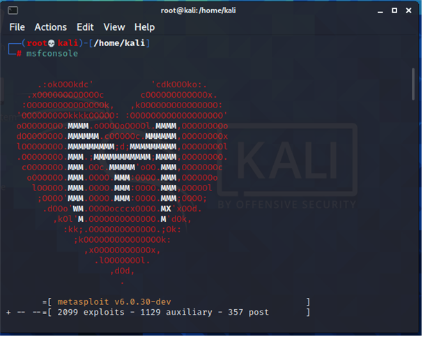 msfconsole 명령어를 사용해서 Metasploit console을 작동시킨다.