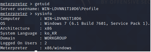 Metasploit을 구성하는 메타프리터 기능을 이용한다. 메타프리터(Meterpreter)는 루비 기반의 스크립트로 작성되었으며, 취약점을 이용한 대상 서버에 침투한 후, 간단한 명령을 이용해 시스템의 정보를 획득할 수 있는 기능을 제공한다.