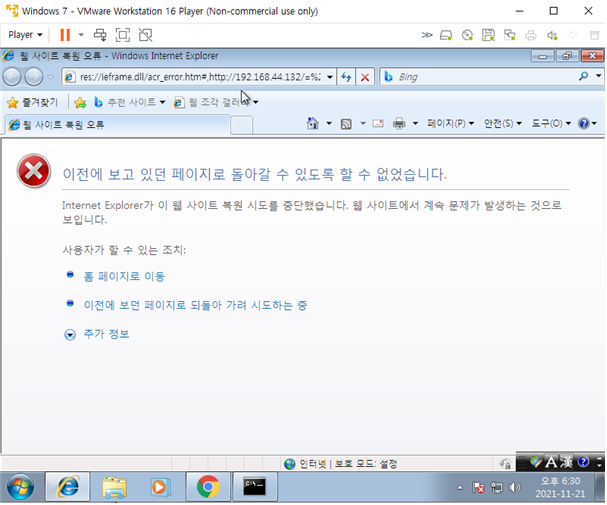 윈도우 7을 사용한 이유는 현재 윈도우 10에서는 Adobe Flash Player을 지원하지 않기도 하며 사용을 막아두었기에 윈도우 7 환경에서 시도하였다. 또한 CVE-2014-0497에 해당하는 Adobe Flash Player는 11.1.102.55 버전을 사용한다. 또한 윈도우 7을 통해 인터넷 익스프롤러 8이 기본으로 설치되어 있기에 따로 구할 필요없이 사용이 가능하다.