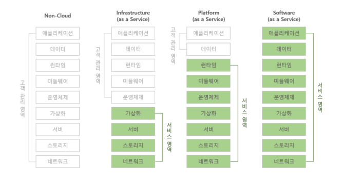 • SaaS(Software as a Service) - 클라우드를 통해 서비스(응용프로그램) 제공