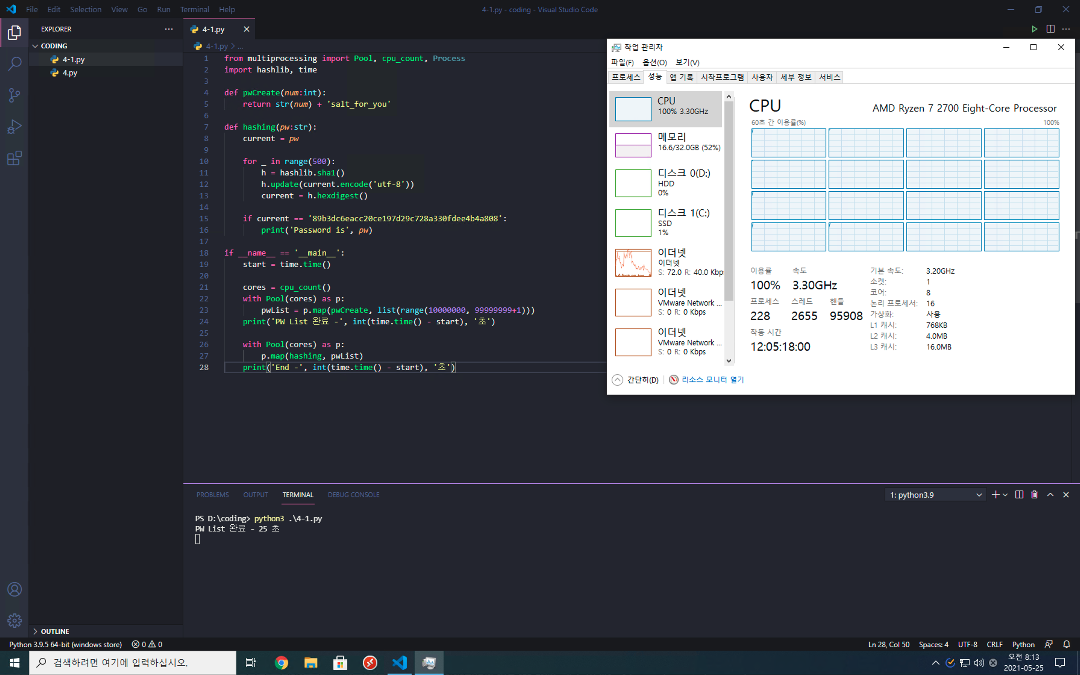 이렇게 하지 않으면 범위가 크기 때문에 엄청난 시간이 소요될 것으로 판단된다. - 방법 2 - 멀티 프로세싱을 이용하는 방법