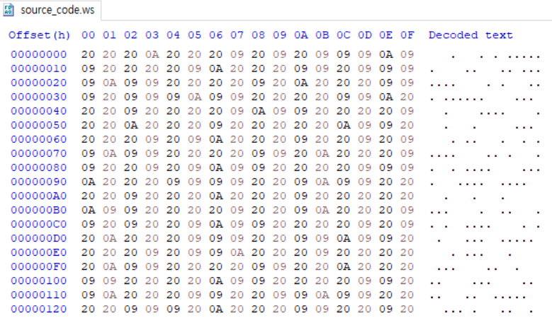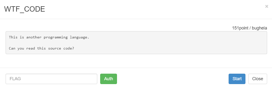 Season 1/워게임 Wargame.kr - WTF_CODE 작성자 - 알 수 없는 사용자 문제 - 다른 프로그래밍언어라는 문제 내용 확인. - Start! Start - 꽤 허접해 보이는 문제, 별 내용이 없다. - html 코드를 확인하였지만 파일 다운로드 외 의미있는 내용이 없다. - 파일 다운로드 및 내용 source_code.ws - 문자는 안보이지만 공백이 존재한다. - 더욱 자세한 확인을 위해 Hex코드 확인해 보자. source_code.ws-Hex - 공백, 개행(LF), 탭(Tab)으로만 이루어져 있는 파일 - 우선 이 파일의 확장자(.ws)부터 확인해 보자. - 구글링 결과 ws는 'Whitespace'라고 하는 프로그래밍 언어라고 한다. - 두명의 외국인이 만우절에 발표한 언어로써, 공백과 탭, 개행문자만을 이용하여 코딩하는 난해한 프로그래밍 언어이다. - 자세한 내용은 참고 사이트 확인 : https://ko.wikipedia.org/wiki/%ED%99%94%EC%9D%B4%ED%8A%B8%EC%8A%A4%ED%8E%98%EC%9D%B4%EC%8A%A4_(%ED%94%84%EB%A1%9C%EA%B7%B8%EB%9E%98%EB%B0%8D_%EC%96%B8%EC%96%B4) 화이트스페이스 (프로그래밍 언어) - 위키백과, 우리 모두의 백과사전 위키백과, 우리 모두의 백과사전. 화이트스페이스(Whitespace)는 에드윈 브래디(Edwin Brady)와 크리스 모리스(Chris Morris, cim)가 2003년 4월 1일(만우절)에 발표한 난해한 프로그래밍 언어이다. 문법에는 ko.wikipedia.org - 온라인컴파일 사이트에서 'Whitespace' 언어를 컴파일해보자. - https://ideone.com/ Ideone.com Ideone is something more than a pastebin; it's an online compiler and debugging tool which allows to compile and run code online in more than 40 programming languages. ideone.com - source_code.ws 컴파일 source_code.ws 컴파일 - 만우절에 발표할 만한 언어이다. 참고로 해당 언어는 공백, 개행, 탭을 제외한 문자들은 모두 무시하므로 문자를 넣어도 의미는 없다. - 컴파일을 통해 Key를 획득하였으며 특정ip주소에서만 사용된다고 한다.(모자이크 부분) - 해당 문제에 접속하는 사용자의 ip로 각기 다른 Key를 생성하는 것으로 보인다. 공유하기 게시글 관리 MSS 'Season 1 > 워게임' 카테고리의 다른 글 [Webhacking.kr] Old - 46 Write Up (0) 2021.05.27 [Webhacking.kr] Old - 11 Write Up (0) 2021.05.27 [Webhacking.kr] Old - 7 Write Up (0) 2021.05.26 [Webhacking.kr] Old - 5 Write Up (0) 2021.05.25 [Webhacking.kr] Old - 4 Write Up (0) 2021.05.25 Contents 당신이 좋아할만한 콘텐츠 [Webhacking.kr] Old - 46 Write Up 2021.05.27 [Webhacking.kr] Old - 11 Write Up 2021.05.27 [Webhacking.kr] Old - 7 Write Up 2021.05.26 [Webhacking.kr] Old - 5 Write Up 2021.05.25 댓글 0 + 이전 댓글 더보기