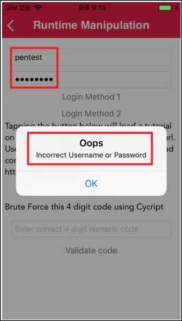 Season 1/기술 보안 [IOS] DVIA 를 통한 취약점 파헤치기!(Runtime 조작) 작성자 - 한수임 안녕하세요 이번에는 Runtime 조작을 수행해 보겠습니다. 런타임 조작을 통해 앱이 실행될 때 흐름 조작, 정보 유출 등이 가능. 런타임 조작을 사용하여 인스턴스 변수 수정, 로컬 로그인 검사 우회, 무차별 강제 핀 코드 사용 가능 1. 앱 실행 Runtime Manipulation 실행 START 도전! 로그인 메소드, 인증 코드 우회 등을 수행 예정 임의의 ID/PW 입력 시 에러 발생 클래스 확인 후 의심되는 메소드 확인 예정 의심되는 메소드를 찾기 위해 frida 클래스 검색을 위해 코딩 수행 이후 프리다를 이용해 클래스 확인 해당 명령어로 조회 시 모든 클래스가 검색 되기에, find 를 이용하여 Login 문자열만 검색 검색 시 LoginValidate라는 의심가는 클래스 확인 해당 클래스를 통해 메소드 값 확인하는 코딩 수행 해당 코드 구동하면 2개의 메소드 확인 해당하는 주소 값 확인을 위해 추가 적인 코딩 수행 코딩 내용 프리다를 이용해 구동 구동 후 로그인 메소드 클릭 시 위와 같이 Return 값과 type 값이 노출됨 이후 코드 수정 bool 값이 트루가 되도록 Return Value 값을 0x1 로 수정 이후 프리다 실행 프리다 수행 후 앱의 Login Method 클릭 시 우회 되는 것을 확인 이후엔 2번째 문제를 풀어보도록 하겠습니다. 이번 실습도 끄읏~ 공유하기 게시글 관리 MSS 저작자표시 비영리 (새창열림) 'Season 1 > 기술 보안' 카테고리의 다른 글 SRUDB(SRUM) 분석 (0) 2023.12.31 Windows 시스템 CMD 로그 기록하기 (0) 2023.12.31 [IOS] DVIA 를 통한 취약점 파헤치기!(불필요한 권한 설정) (0) 2023.12.03 [Active Directory] 3장. AD 기본 계정과 권한 (0) 2023.11.30 [IOS] DVIA 를 통한 취약점 파헤치기!(Jailbreak Detection 4) (0) 2023.11.30 Contents 당신이 좋아할만한 콘텐츠 SRUDB(SRUM) 분석 2023.12.31 Windows 시스템 CMD 로그 기록하기 2023.12.31 [IOS] DVIA 를 통한 취약점 파헤치기!(불필요한 권한 설정) 2023.12.03 [Active Directory] 3장. AD 기본 계정과 권한 2023.11.30 댓글 0 + 이전 댓글 더보기