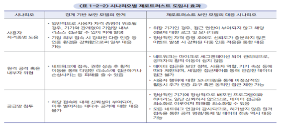 이를 통해 기존의 경계 기반 보안 방식은 매우 복잡하고 다변화된 현재의 기업망 환경에서 더는적합하지 않은 것으로 보인다.