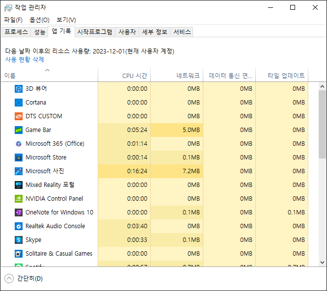 여기서 Network Data Usage 와 Application Resource Usage 를 통해 어떤 User SID를 가진 사용자가 몇시에 해당 프로그램을 사용했으며, 몇 시간(분) 동안 통신을 통해 어느정도의 데이터를 유출 했는지 등의 데이터를 확인 할 수 있다.