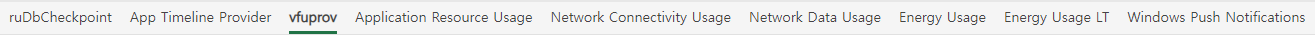 SRUM을 이용하여 ruDB체크포인트, 앱 타임라인 제공자, vfuprov, 애플리케이션 리소스 사용량, 네트워크 데이터 사용량, 에너지 사용량, 에너지 사용량 LT, 윈도우 푸시 알림 을 알 수 있다.