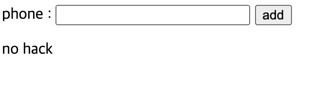 카페에서 여자가 내 번호를 물어봤을 때, 내가 여자의 폰에 전화번호를 입력하는 설레는 마음으로 입력하여, 서버로 보내니 no hack이 출력되었다.