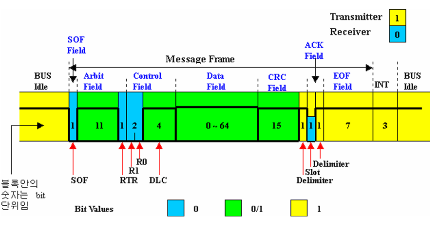 CAN 프레임은 여러 개의 비트 필드로 구성된다.