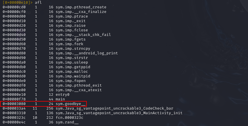- afl: 전체 함수 목록 조회 ⭢ goodbye 함수 확인