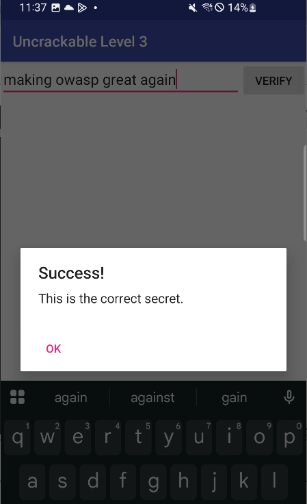 String obj = ((EditText) findViewById(owasp.mstg.uncrackable3.R.id.edit_text)).getText().toString();