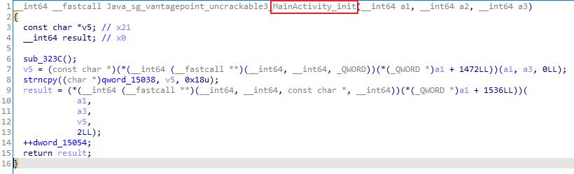 - qword_15038 함수 분석 --> MainActivity.init에서 실행함을 확인