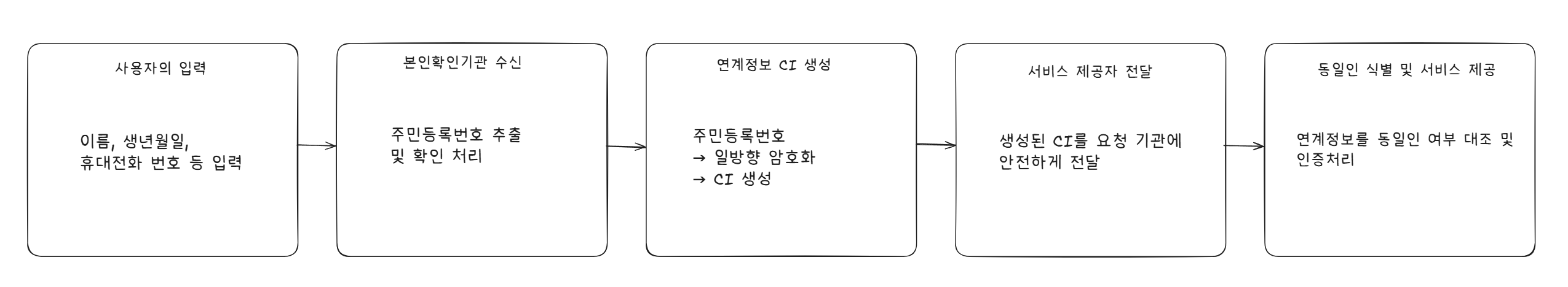 Security Compliance 연계정보(CI : Connecting Information) 작성자 - 현우는 5살 연계정보(CI : Connecting Information) 목차 연계정보(CI)란? 사용 예시 장점 마무리 연계정보(CI)란? 먼저, 연계정보(Connecting Information, CI)*는 주민등록번호를 일방향 암호화한 88바이트 식별자입니다. 복호화가 불가능하며, 동일인 식별은 가능하되, 개인정보 유출 위험은 현저히 낮습니다. 연계정보를 사용하는 이유? 1. 법적으로 주민등록번호 수집/이용이 제한됨. 2. 비대면 서비스 증가 → 안전한 식별 수단 필요. 3. 연계정보는 이런 환경에서 최적화된 안전한 대체 수단으로 볼 수 있음. 법적근거 정보통신망법 제 23조의 5 ~ 6항 더보기 1. 정보통신망법 제23조의5 (연계정보의 생성·처리 등) 제1항: 본인확인기관은 다음과 같은 경우에 한해 주민등록번호를 비가역적으로 암호화한 연계정보를 생성·처리할 수 있음 ① 이용자 식별·인증 서비스 제공 시 ② 행정기관이 전자정부 서비스를 제공하기 위해 요청한 경우 ③ 고유식별정보 보유자가 개인정보 전송을 위해 요청한 경우 ④ 개인정보 보호법 제24조의2에 따라 주민등록번호 처리가 허용된 경우로서 방송통신위원회의 승인을 받은 경우. 개인정보보 보호법 제 24조의 2항 더보기 1. 정보통신망법 제23조의5 (연계정보의 생성·처리 등) 제1항: 본인확인기관은 다음과 같은 경우에 한해 주민등록번호를 비가역적으로 암호화한 연계정보를 생성·처리할 수 있음 ① 이용자 식별·인증 서비스 제공 시 ② 행정기관이 전자정부 서비스를 제공하기 위해 요청한 경우 ③ 고유식별정보 보유자가 개인정보 전송을 위해 요청한 경우 ④ 개인정보 보호법 제24조의2에 따라 주민등록번호 처리가 허용된 경우로서 방송통신위원회의 승인을 받은 경우. 신용정보법 제 33조의 2항 더보기 3. 개인정보 보호법 제35조의2 (개인정보 전송 요구권) 정보주체는 본인의 개인정보를 다른 기관 또는 자신에게 전송 요구 가능 이를 위해 연계정보를 통해 정보주체를 정확히 식별해야 하며, 본인확인기관은 이 목적을 위해 연계정보 생성·처리 가능. 사용 예시 1. 생성 절차 주민등록번호는 본인확인기관 내부에서만 일시 사용되고 저장되지 않으며, CI는 복호화 불가능한 암호정보로, 기관 간 동일인 식별만을 위해 사용됩니다. 또한, 주민등록번호 없이도 여러 서비스 간 사용자를 연계할 수 있어, 개인정보 보호에 매우 효과적입니다. 2. 활용 예시 전자고지 건강보험공단, 세무서 등에서 모바일로 고지서 수신 주민번호 대신 CI로 이용자 식별하여 고지 전송 금융 마이데이터 은행, 카드사 등 여러 금융기관 정보 한 번에 열람 각 기관이 CI를 기준으로 동일인 정보 수집 및 제공 장점 개인정보보호 : 주민등록번호를 직접 사용 하지 않고 식별이 가능합니다. 서비스 연동 : 여러 기관 간 통합된 사용자를 식별 가능합니다. 편의성 : 인증 과정이 단순화, 보안성이 강화됩니다. 마무리 제가 갑자기 CI를 정리하는 이유는 주민등록번호대체 관련 업무를 진행하는 부서에 계약직을 지원하게 되면서 공부한 내용을 간단하게 요약하여 정리하였습니다. CI는 주민등록번호대체 인증이며 쉽게 생각해서 네이버인증이나, 카톡으로 인증하는거라고 생각하시면 편하실거 같습니다! 공유하기 게시글 관리 MSS 저작자표시 비영리 (새창열림) 'Security Compliance' 카테고리의 다른 글 일본 개인정보 취급 동의서 작성 (0) 2025.02.28 위험평가와 취약점 진단 (0) 2025.01.31 컨설팅 관점의 IT 인프라 보안 (0) 2025.01.01 Contents 당신이 좋아할만한 콘텐츠 일본 개인정보 취급 동의서 작성 2025.02.28 위험평가와 취약점 진단 2025.01.31 컨설팅 관점의 IT 인프라 보안 2025.01.01 댓글 0 + 이전 댓글 더보기