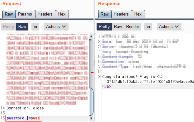 Season 1/워게임 Wargame.kr - strcmp 작성자 - 알 수 없는 사용자 문제 - 'strcmp' 함수를 우회하라는 문제 확인. - Start Start - view-source view-source - 패스워드가 일치하면 Flag를 획득할 수 있다. - if (strcmp($_POST['password'], $password) == 0) 를 통해 패스워드를 검증 - strcmp 함수는 두 개의 인자 값이 같으면 '0'을 반환한다. - PHP 5.3버전에서는 strcmp 함수의 인자 값으로 배열을 입력하면 NULL을 반환하는데, 이것을 이용한다. ( 참고로 5.2버전에서는 인자 값으로 배열을 입력하면 'Array'라는 문자열로 변환하여 1 또는 -1을 반환한다.) - 느슨한 비교문(==)에서 'NULL == 0' 은 참이므로 password에 배열을 전달해보자. 문제 해결 - 'password[]=pass' 를 전달하여 strcmp 함수를 우회, Flag를 획득할 수 있었다. 공유하기 게시글 관리 MSS 'Season 1 > 워게임' 카테고리의 다른 글 (HackThisSite) Basic missions - Level 4 (0) 2021.05.31 (HackThisSite) Basic missions - Level 3 (0) 2021.05.31 [Webhacking.kr] Old - 53 Write Up (0) 2021.05.30 suninatas/웹/4번 문제풀이 (0) 2021.05.30 [Webhakcing.kr] Old - 48 Write Up (0) 2021.05.29 Contents 당신이 좋아할만한 콘텐츠 (HackThisSite) Basic missions - Level 4 2021.05.31 (HackThisSite) Basic missions - Level 3 2021.05.31 [Webhacking.kr] Old - 53 Write Up 2021.05.30 suninatas/웹/4번 문제풀이 2021.05.30 댓글 0 + 이전 댓글 더보기