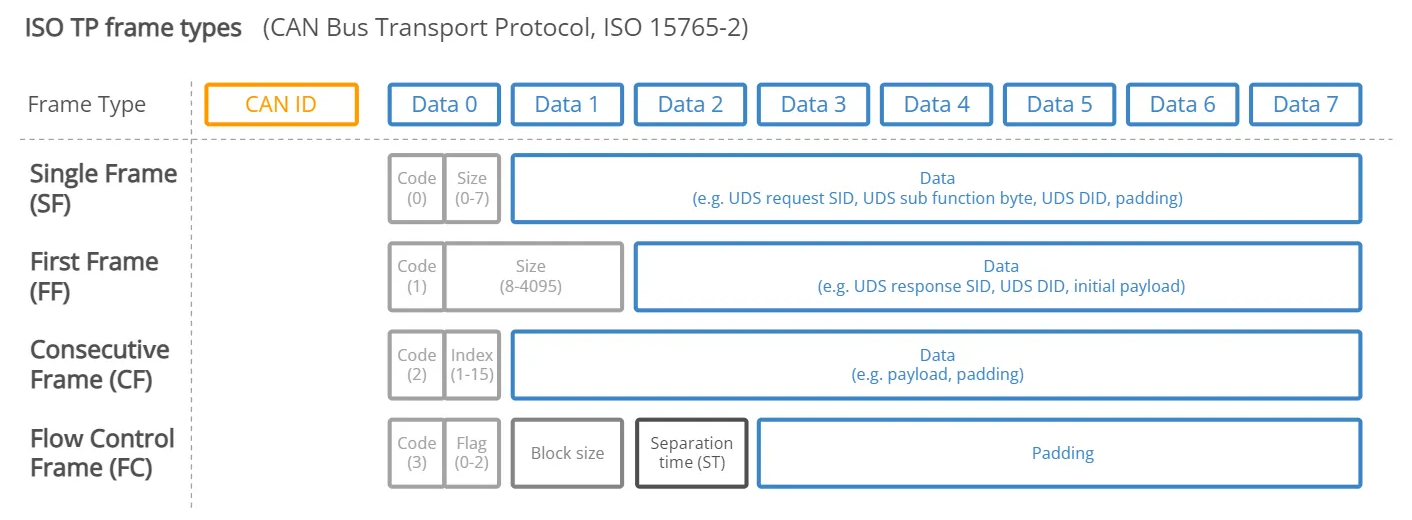 ISO-TP의 프레임은 다음과 같이 구성되어 있음.