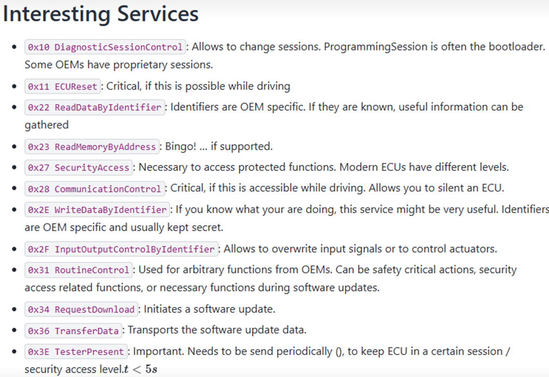 이렇게 해서 차량 진단에 사용되는 기본적인 프로토콜과 보안적 기능들에 대해 살펴보았다. 더욱 다양한 프로토콜과 기능들이 존재하지만 다음 게시글에서 추가적으로 작성해보도록 하겠다.