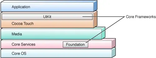 - Core OS → Core Services → Media → Cocoa Touch