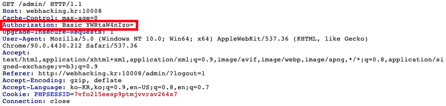해당 Base64는 admin으로 인코딩한 것이다.