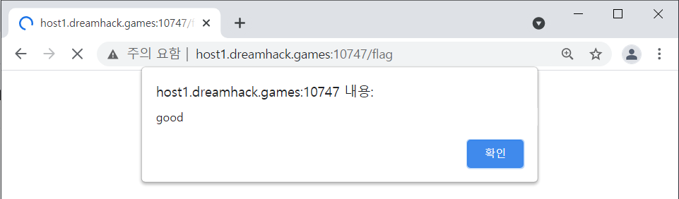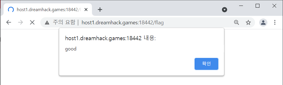 flag 페이지는 csrf 파라미터 값을 전달하고, read_url(csrf) 함수가 정상 동작한다면 good 문자열을 출력한다.