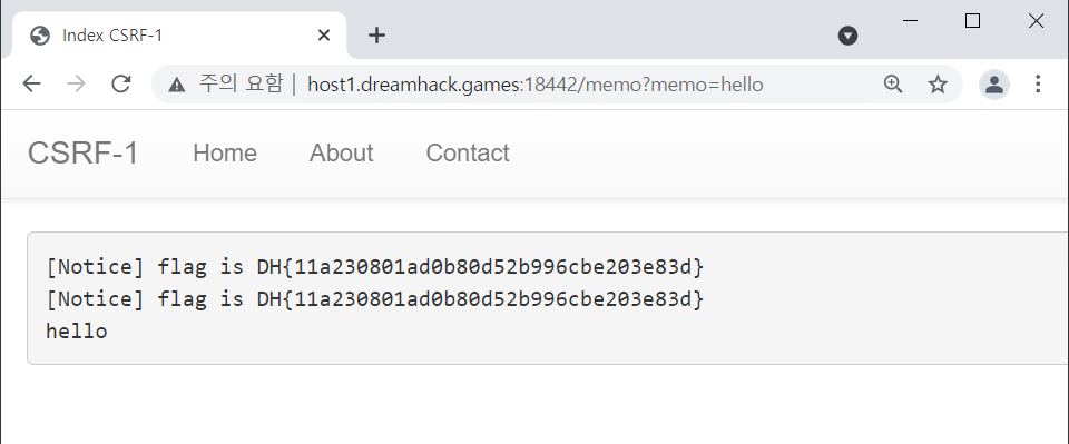 수행이 되었다면 memo 페이지에 flag 값이 출력되어 있을것이다.