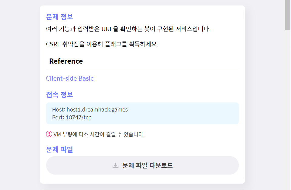 입력받은 URL을 확인하는 봇이 구현된 서비스에서 CSRF 취약점을 이용한 FLAG 획득 문제이다.