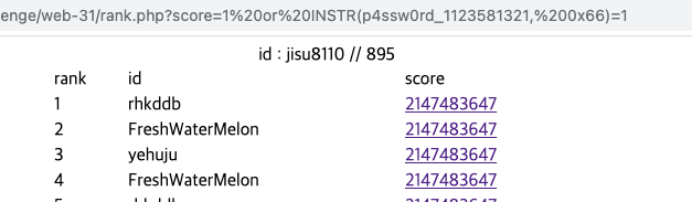 url = 'https://webhacking.kr/challenge/web-31/rank.php?score='