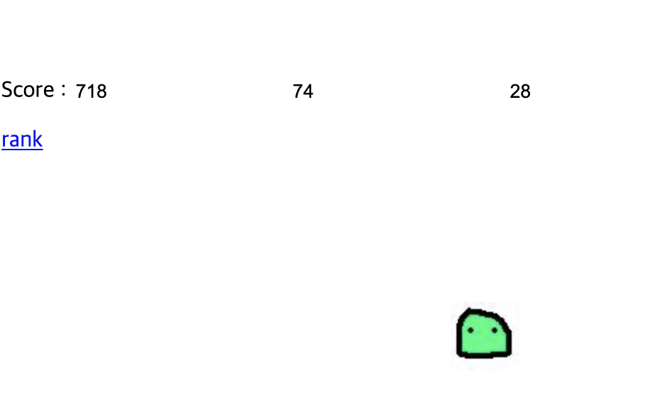 마우스를 따라오는 슬라임이 있는 페이지가 나왔다. 슬라임이 움직이면 Score도 증가가 되었다.